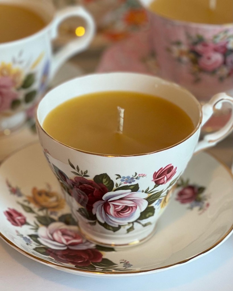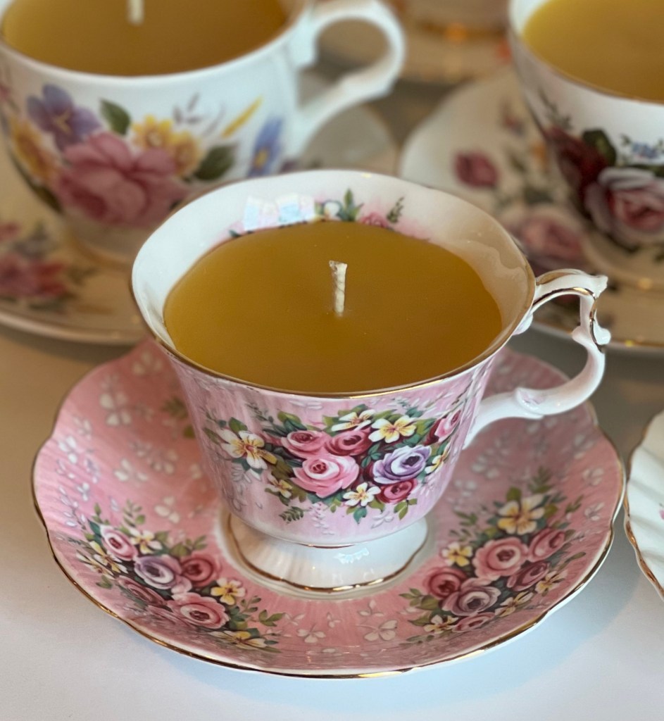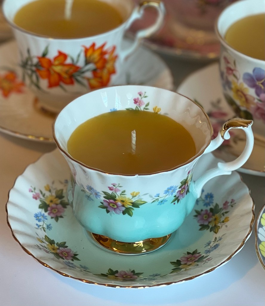 Take a moment to explore our exquisite collection of hand-poured candles, each made with locally sourced 100% pure golden beeswax. The candles are poured into upcycled fine bone china teacups, ensuring a one-of-a-kind piece. You’ll love the attention to detail and the beauty that each candle brings to your space.